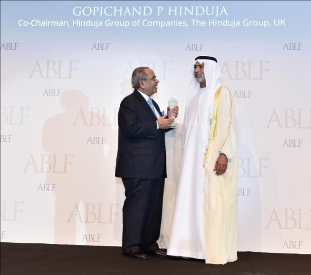 ABLF Royal Patron, H.H. Sheikh Nahayan Mabarak Al Nahayan, Minister of Culture, Youth and Community Development, UAE, presented the award to Gopichand P Hinduja, Co-Chairman, Hinduja Group of Companies, The Hinduja Group, UK, at a glittering ceremony in Dubai.