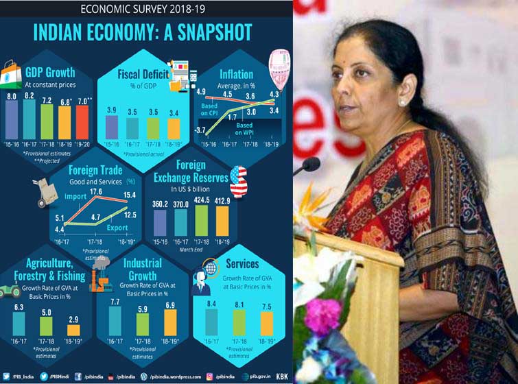 New Delhi, July 4 (IBNS): A day ahead of the Union Budget, Finance Minister Nirmala Sitharaman on Thursday tabled the Economic Survey which has given a call for a sustained 8% growth rate for India to become a USD 5 Trillion Economy by 2024-25. The government forecast the real GDP growth for the year to 7% percent this year, while being wary of checking the fiscal deficit.