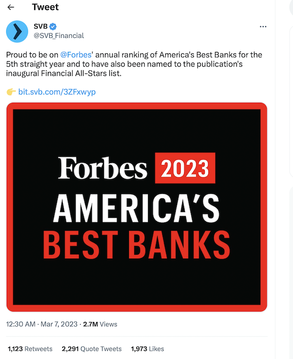 Ironically, this was a recent tweet of the bank