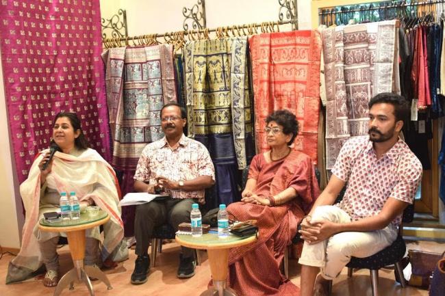 The programme ‘Baluchari: Bengal & Beyond’ has a slew of initiatives towards contemporising this ever-glorious sari through design and ethics of craft revival, which was discussed at a Press Conference addressed by Darshan Mekani (Director, WSRC); Rabindranath Ray (MD, Tantuja); Kasturi Gupta Menon (President, Crafts Council of India) and Narayan Sinha (Artist).
