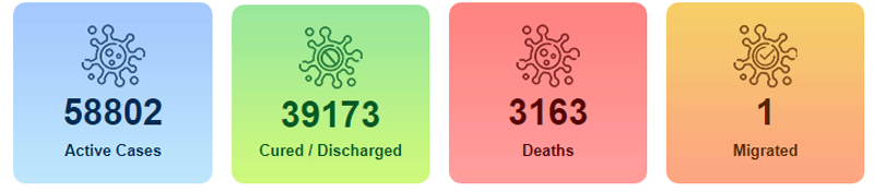 New Delhi/IBNS: The number of COVID-19 cases in India has crossed 1 lakh-mark while the death toll in the country now stands at 3163, as per data released by the Ministry of Health.