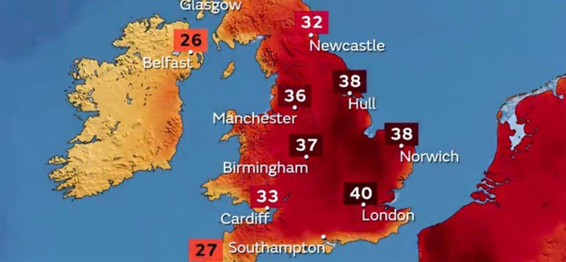 Extreme heat in western Europe is causing devastating wildfires in France and Spain, unprecedented drought in Italy and Portugal, and the United Kingdom recorded its highest-ever temperature of just over 40 degrees Celsius during Tuesday, at London’s Heathrow airport.