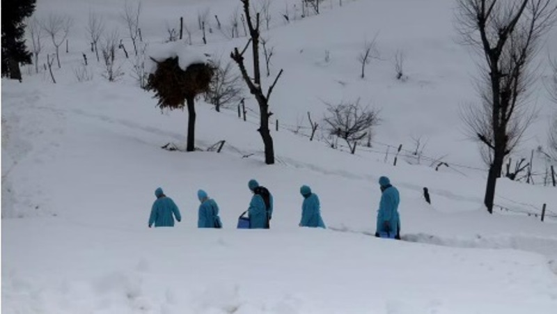 Kashmir's health workers enter snow bound areas to provide vaccines