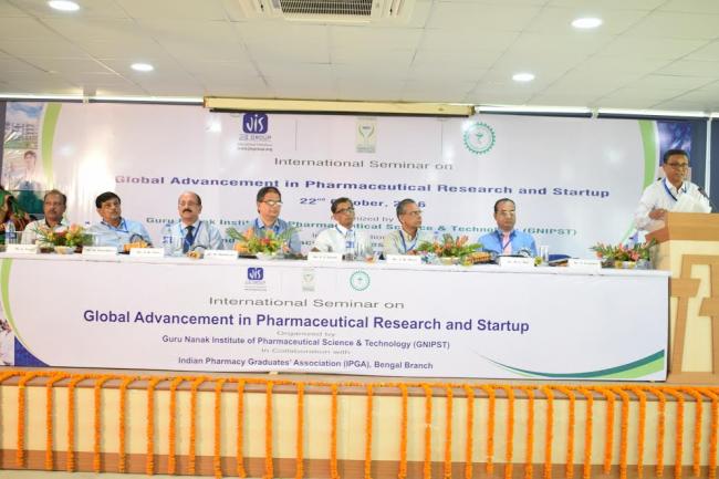 The dignitaries of the seminar were present Siddhartha Saran Ghosh (Assistant Professor, Dept. of Internal Medicine, Division of Nephrology, VCU Medical Centre, Richmond, Virginia, USA); Ashok Kumar Mitra (Consumer Product Development and Open Innovation Catalyst, Your Encore Lynchburg, Virginia, USA); Biswajit Mukherjee (Head of Department, Department of Pharmaceutical Technology, Jaddavpur University, Kolkata); Atul Kumar Nasa (All India President, IPGA), B C Mal (Vice- Chancellor, JIS University) and among others.