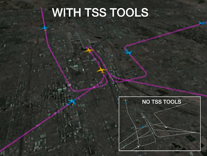 The Terminal Sequencing and Spacing (TSS) technology will enable air traffic controllers to better manage the spacing between aircraft as they fly more efficient approaches into airports, saving both time and fuel and reducing emissions.