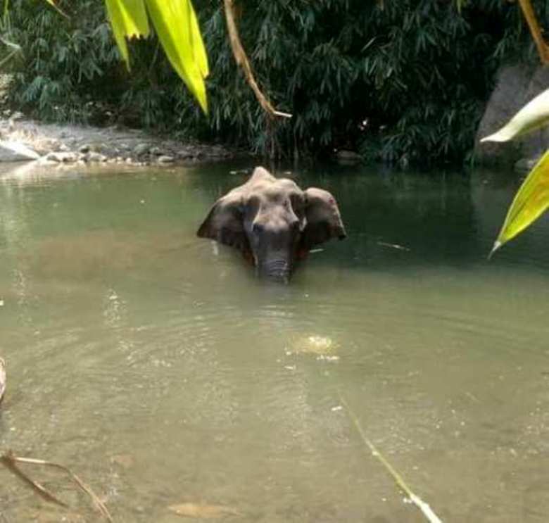 Despite hours of attempts by the forest officials to rescue the elephant, she died at 4 pm on May 27, standing in water.