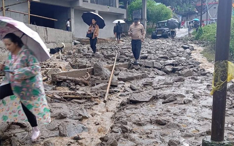 The Kalimpong–Darjeeling road via Teesta Bazar is shut due to flooding near Rabijhora.