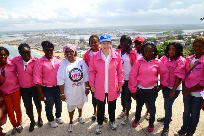 The UNDP administrator also met with the so-called “Pink Panthers” motorcycle club, a group of women who offer motorbike taxi services. UNDP has been working with the women riders to find ways to make their jobs safer, including in the context of Ebola.