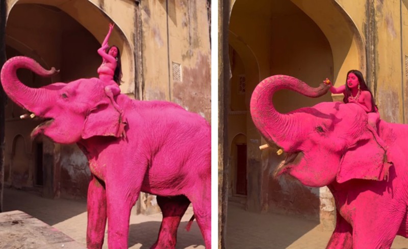 A photoshoot by a Russian photographer in Jaipur, featuring an elephant painted bright pink, has sparked widespread online criticism, with many social media users calling it animal abuse and questioning the ethics behind the act.
