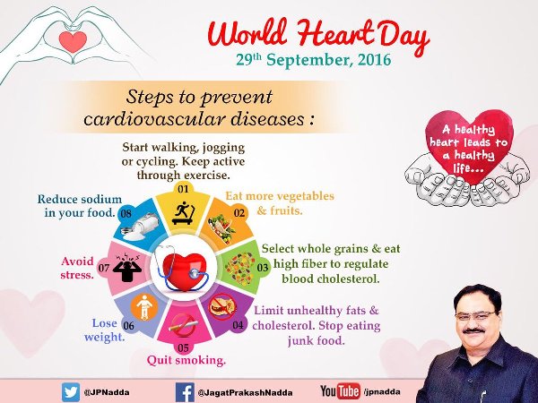 "This #WorldHeartDay,let us pledge to reduce the burden of cardiovascular diseases by leading a balanced,healthy & active life #SwasthaBharat," Nadda tweeted.