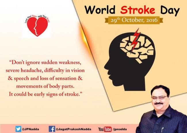 "#WorldStrokeDay is observed to raise awareness for the prevention & treatment of stroke & to ensure better care & support for survivors," Nadda tweeted.