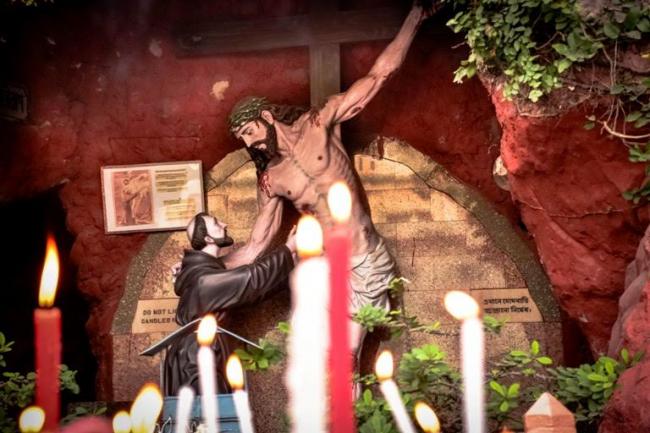 A statue of Christ in Bandel Church.“We must love and protect one another. That is what every religion says. That is what I tell them here,” he says.