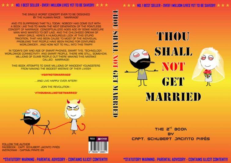 This book "Thou Shall Not Get Married" is a humorous look at what happens after marriage. Something that nobody tells the youngsters before they go in for it and then they're left in a shock. So this book throws light onto what to expect after getting married. So that the Next Generation can wisen up and take informed decisions on how to go about with their lives. Someday a lot of them will be thanking me for this book.