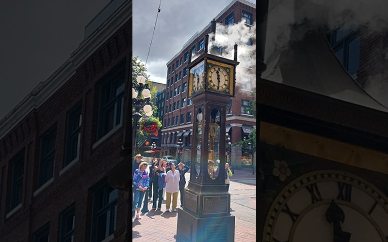 Vancouver’s Gastown Steam Clock delights visitors as it whistles and releases bursts of steam, blending quirky engineering with old-world charm.Ranjita Biswas