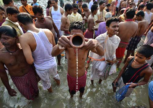 The day marks the commencement of Devipaksha (Fortnight of the Goddess) amid rituals by the pious Hindus in the Ganges.