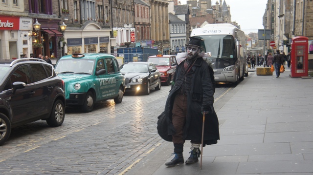 A street performer in Edinburgh's The Royal Mile, the main thoroughfare of the Old Town.