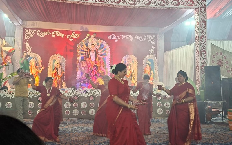Soon they were joined by other soldiers — both serving and retired — their children, and their wives in red-bordered saris, completing the smoky circle of joy. It was the dhunuchi naach on Ashtami night. For the small Bengali community, far from Kolkata’s towering pandals, it was perhaps the most poignant image of Puja 2025: tradition kept alive not in scale or spectacle, but in the intimacy of shared rhythm, laughter, and memory.