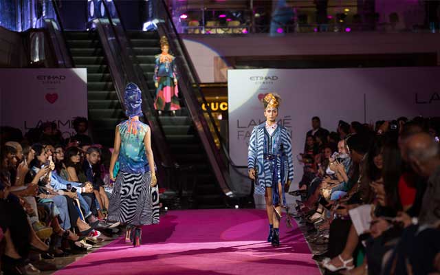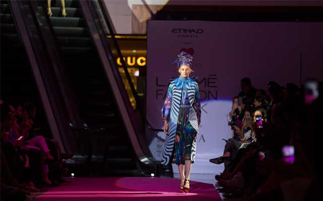 Etihad Airways presented the designer’s collection in a larger-than-life format, with the atrium of the finest luxury mall in the city being transformed into an opulent runway, a first at Lakmé Fashion Week.