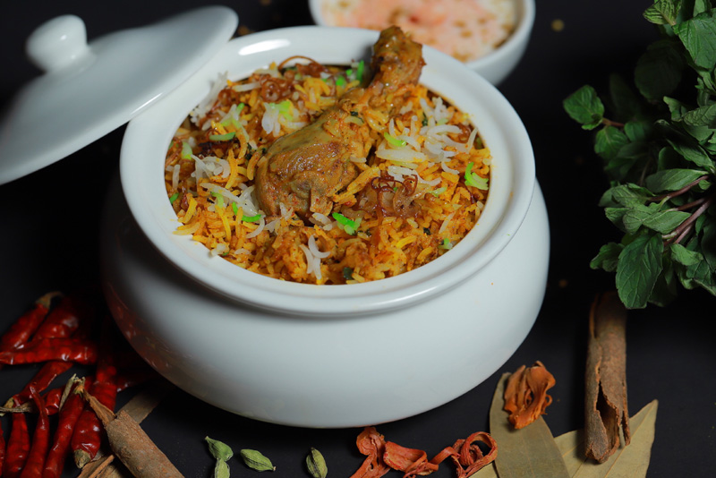 Highlights from the menu includes salads such as Sprout Salad, Cucumber Salad, Mustard Potato Salad, appetizers such as Subz Shami Kebab, Crispy Chilli Baby Corn, Murgh Angara Tikka, mains such as Stir Fried Garlic Veg, Chicken in Black Beans Sauce, Burnt Garlic Fried Rice, Vegetable Lasagna, Paneer Khurchan, Subz Handi Diwani, Aloo Mughlai, Murgh Badshahi Biryani, Mirch Ka Salan, Dal Kabila, and Subz Biryani, desserts such as Shahi Tukra, Baked Boondi, Malai Kulfi, Malpua, Mango Passion Cake and Opera Slice.