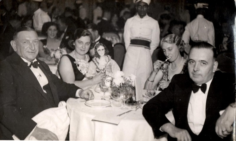 Sir Biren Mookerjee and Lady Ranu Mookerjee's family (Martin Burn) dining at Firpo's.