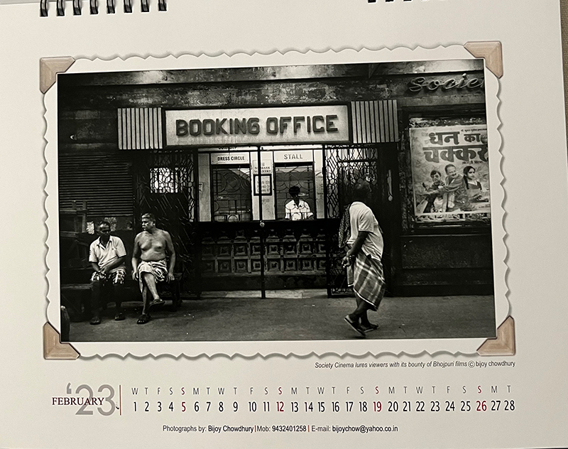 Noted photographer Bijoy Chowdhury's annual calendar is a tribute to a fading era of watching movies in single screen theatres. The award-winning lensman and documentary filmmaker's calendar is a collection of black and white images capturing the vignettes of Kolkata's iconic showhouses breathing their last.