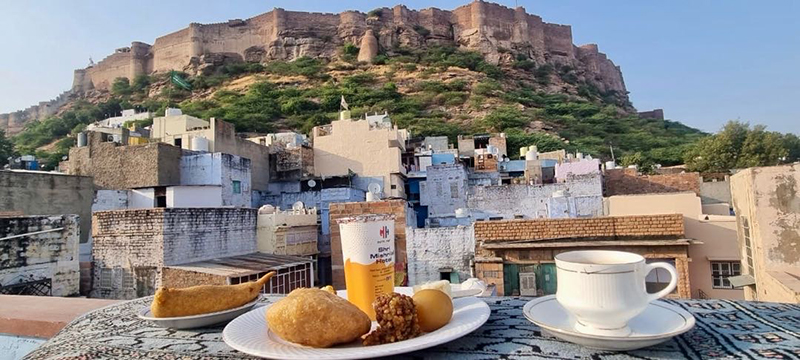 The majestic Mehrangarh fort serves as the perfect backdrop to this quaint café serving local delicacies, finger foods and beverages.