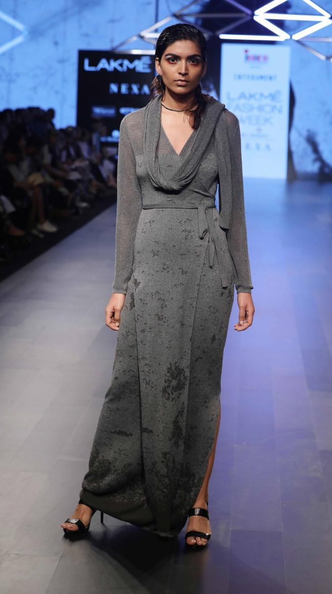 Knits made a great impact on the ramp as black layered tunic/pant and gilet caught the eye.