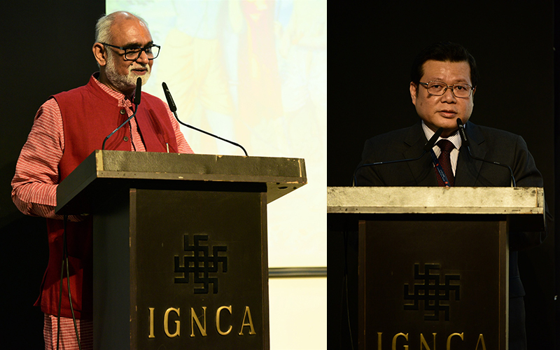 Minister and Deputy Chief of Mission, Royal Thai Embassy, Thirapath Mongkolnavin, Dr Sachchidanand Joshi, Member Secretary, IGNCA and Prof. K. Anil Kumar, HoD, JS Division, lit the lamp to mark the inauguration.
