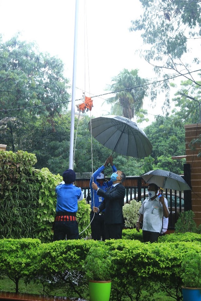 The Indian tricolour was hoisted while maintaining the Ministry of Health and Family welfare guidelines of social distancing and other hygiene standards.