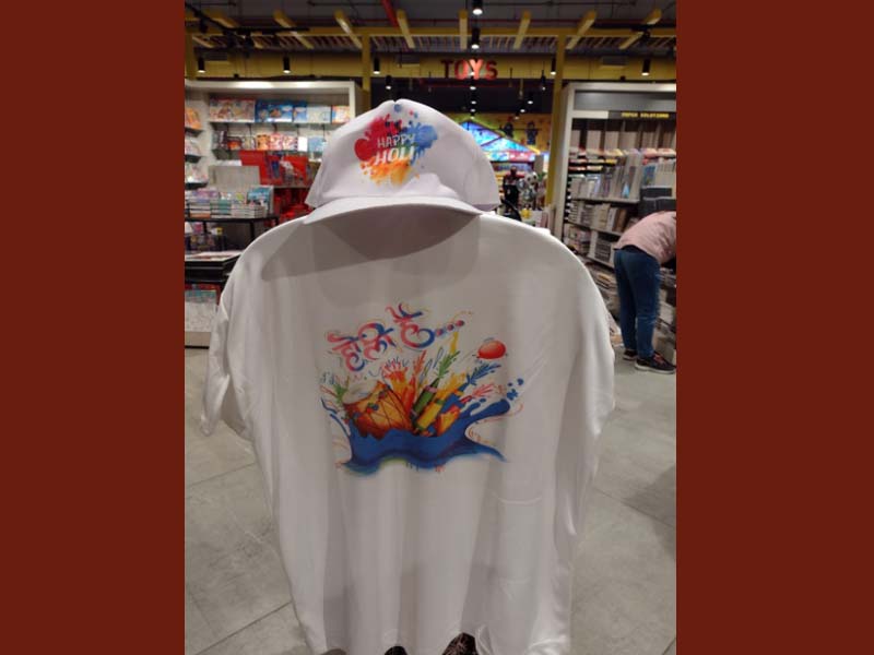 Then there are the smartly designed hand-held posters at Rs 200 per piece; T-shirts priced at Rs 350; caps at Rs 249 and children's Holi gift hampers available at Rs 999 only.
