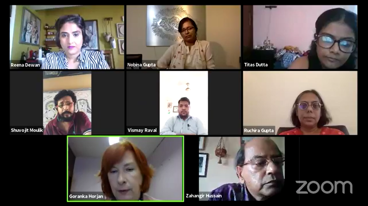 The webinar was participated by Goranka Horjan, Chairperson, INTERCOM, Member of ICOM, Terry Nyambe, ICOM International Board Member from Zambia, Jahangir Hussain, President ICOM Bangladesh, Dr. Vismay H.Raval, Curator Museum Science Centre, Surat, Ruchira Gupta, President, President, Apne Aap Women Worldwide Trust, Nobina Gupta, Founder Director - Disappearing Dialogue Collective and Shuvojit Moulik, Founder, Civilian Welfare Foundation. The session was moderated by Ms. Reena Dewan, Director, KCC.