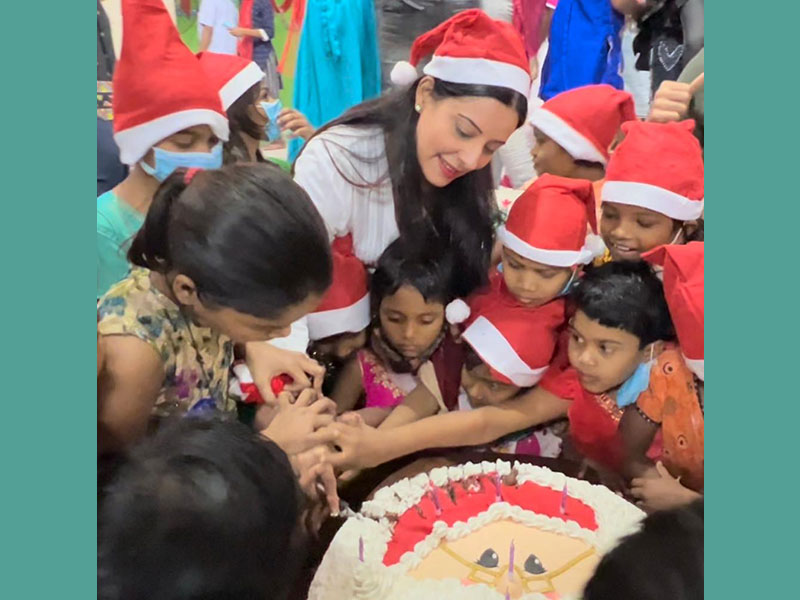 Preksha Agarwal of Chocolic surprised the kids with a huge sumptuous, Santa shaped cake.
