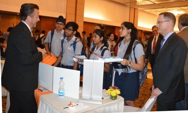 The delegation of twenty U.S. institutions of higher education visited Kolkata on Friday. U.S. Consul General Craig Hall attended the Fair and encouraged the students.