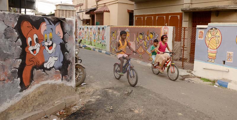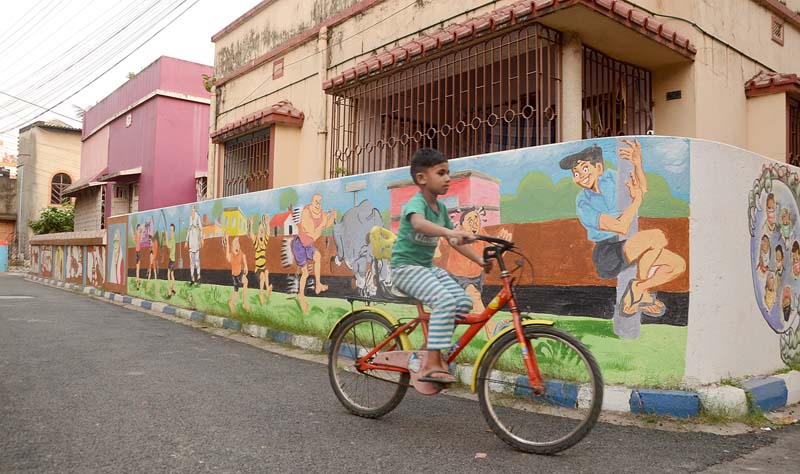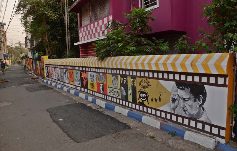 A major credit for the idea to convert the outside walls of houses goes to one of the residents, Anirban Bhattacharya, a popular actor in Bengali cinema and television as well as in the theatre circuit.