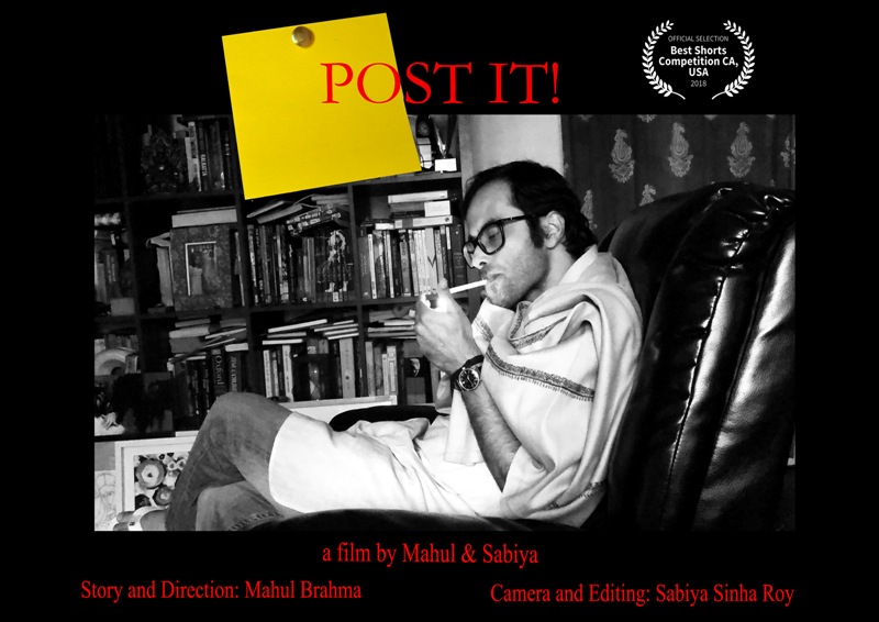 It was a surreal experience directing a ghost, and yes played by yours truly.For Postit!, the thought had germinated in my mind two years back at Cannes Film Festival. The first cut of the story was written mid-air -- on a boarding pass as that was the only piece of paper available. This is a micro short film of 3 min 50 seconds and the film has made it to the official selections: Best Shorts Competition, California and Calcutta International Cult Film Festival (Best Mobile Film and Best Debut Filmmaker).This is a unique love story where the two lovers are separated by death but they find a unique way to communicate – though Post-Its. This film captures a day in their life over a fight on which film they will watch together – Shoot the Piano Player or Rashomon. Sabiya Sinha Roy has shot the movie with an iPhone and edited it in iMovies. She is also the co-producer of the film.