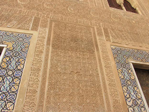 Far away in Spain, the influence of Islamic art can be traced to its medieval history. The Moors from Morocco conquered the Iberian peninsula i.e. Spain and Portugal, step by step beginning in early 8th century and reigned there for almost seven hundred years. Some dynasties were tolerant, allowing Christians and Jews to practice their faith as in Seville and Toledo, and the constructions even in synagogues showed Islamic style embellishments.
