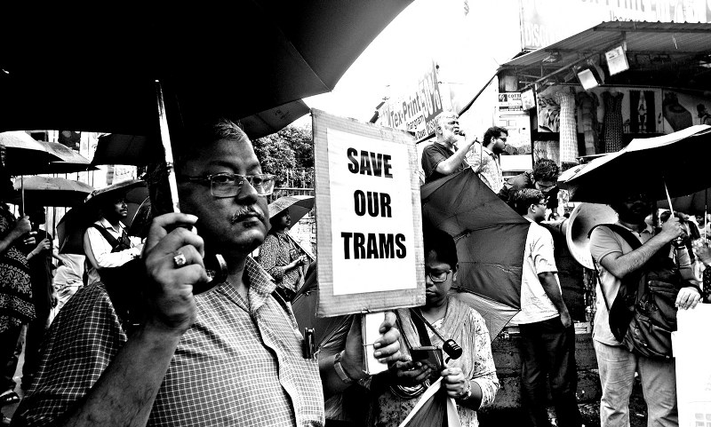 Heart-broken tram lovers are protesting. Photo by Avishek Mitra