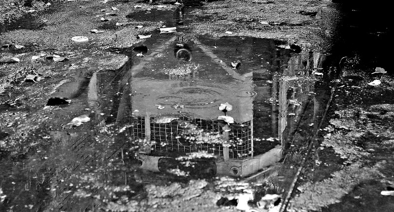 The reflection in a puddle symbolises the grim state of heritage consciousness in Kolkata. Photo by Avishek Mitra