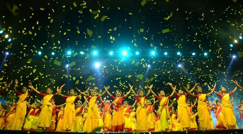 Swaying colourful drop downs from the upper floors of the iconic Indian Museum and showers of yellow confetti fluttering in the air created a magical ambiance welcoming the onset of spring with dance and music. The Vasant Utsav festival was organized by Prabha Khaitan Foundation on the eve of Holi in collaboration with Diksha Manjari.