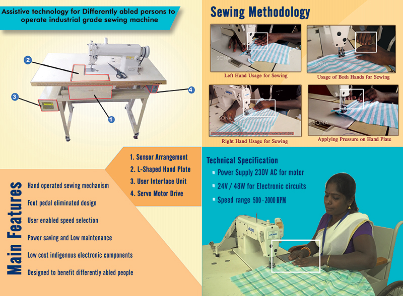 “Researchers from Fashion Technology department of Sona College were challenged by us to develop or modify a sewing machine that addressed the employability handicap that stares in the face of specially-abled persons. The team came up with a technical modification, trained and certified over a hundred women on the modified sewing machine operation. A few women are already making a living using these machines,” said Mr Chocko Valliappa, Vice Chairman, Sona group of education institutions.