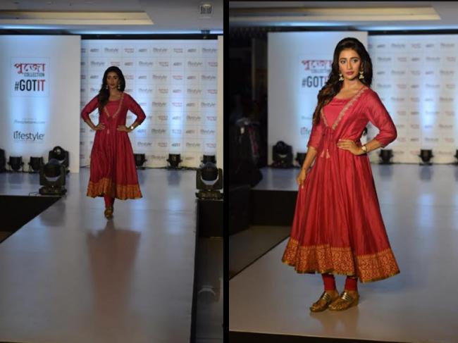 Tollywood actress Sayantika Banerjee curated the ensemble that revealed that Lifestyle's latest collection was dominated by modern silhouettes, classy cuts, dark floral, rich jewel tones, intricate gold foil and vibrant prints,with an overall blend of traditional and modern designs.