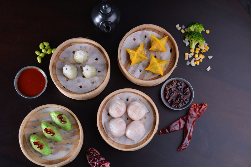 Menu highlights: Tofu and enoki mushroom dumpling, Pan-fried lamb bun with black pepper, Four style vegetables in vegan XO sauce, Chili bean Indian betki, Strawberry yoghurt mousse