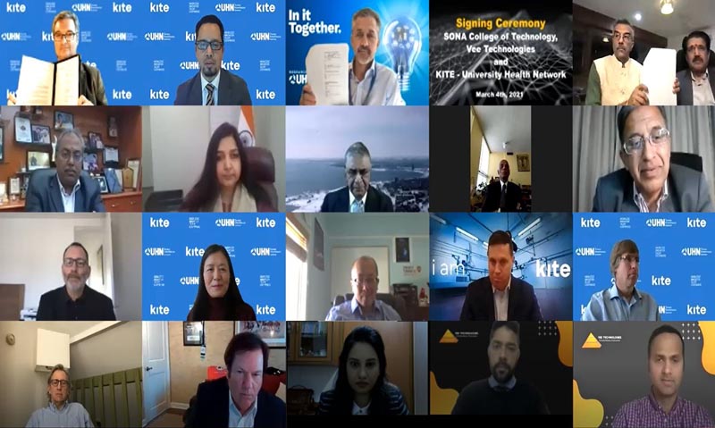 In agreement to this effect was signed by Dr. Bradly G. Wouters, Executive Vice President, Science and Research, University Health Network and Dr. Milos R. Popovic, Director, The KITE Research Institute and Sona College of Technology ChairmanC. Valliappa and Vee Technologies CEO Chocko Valliappa in the presence of Counsel General of India at Toronto Apoorva Srivastava.