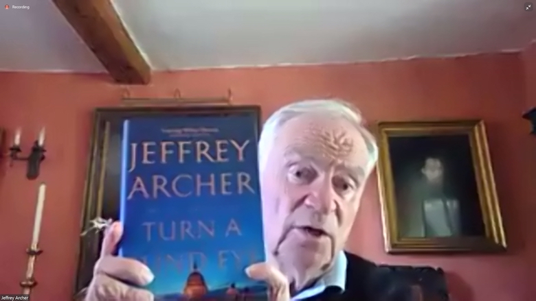 English novelist and former British politician, Jeffrey Archer, had his book Turn a Blind Eye launched in India at a virtual event of Kitab organised by Prabha Khaitan Foundation and presented by Shree Cement. In an exclusive conversation with Vidya Gajapathi Raju, Archer spoke about his new book and more. IBNS correspondent Souvik Ghosh tracks the event