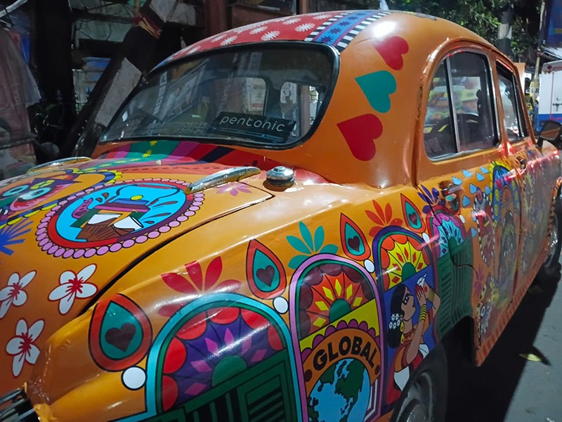 The initiative, a project of Asian Paints Limited, was explained to me by a taxi driver who eagerly showed me a few of these art-clad taxis parked on Shyama Prosad Mukherjee Road in Charu Market, South Kolkata.