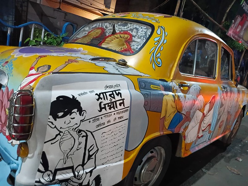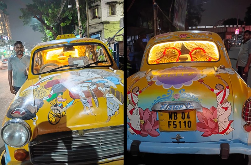 This autumn, as the city celebrates its unrivalled festival, the iconic yellow taxis have taken on a new role — canvases of colour and culture. Dressed in vibrant motifs of Durga Puja, these vehicles now carry with them the spirit of Bengal’s quintessential fiesta.