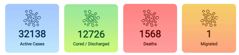 As per the latest update by Ministry of Health and Family Welfare, 78,003 people including 2,549 deceased and 26,235 cured have been infected.