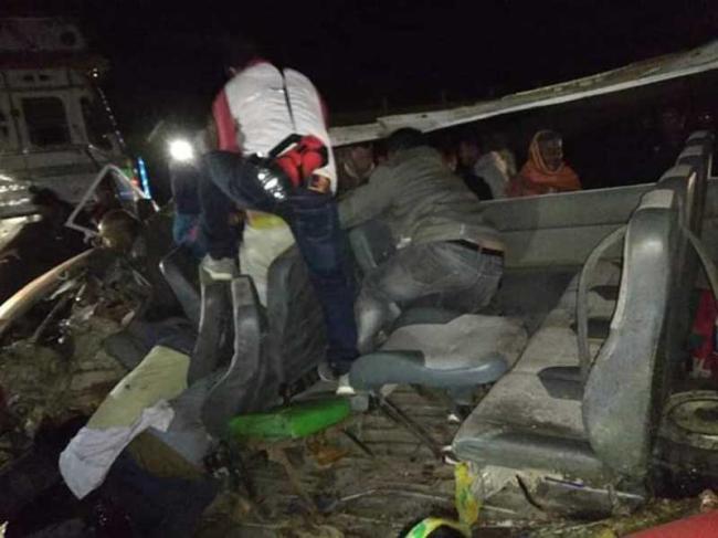 The incident took place at Dhanubhanga area, where a Tata Winger vehicle, carrying the people, hit a truck that was coming from opposite direction.
