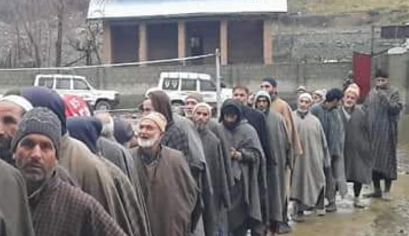 Braving rains and chill, voters stand in long queues to cast ballots in JK DDC 5th Phase polls