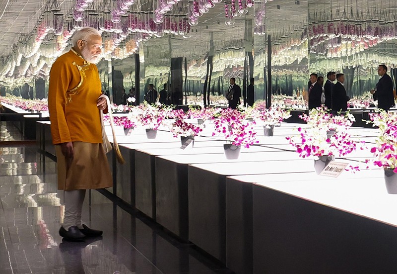 Narendra Modi visits Orchidarium in Gangtok. Photo: PIB